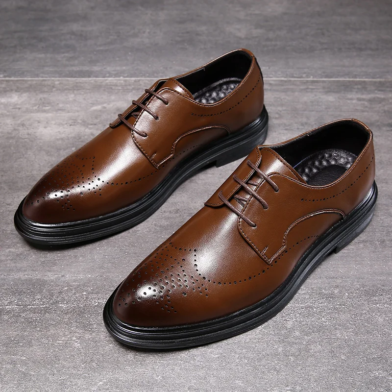 2019 Men Dress Shoes Handmade Brogue Style Paty Leather Wedding Shoes Men Flats Leather Oxfords For