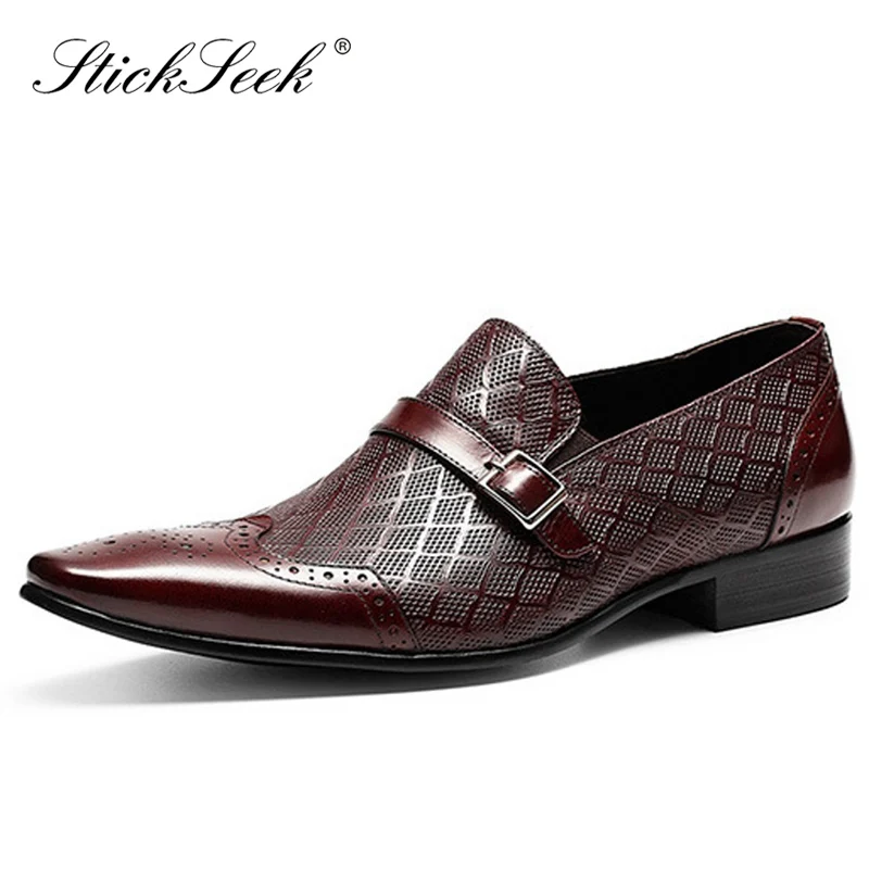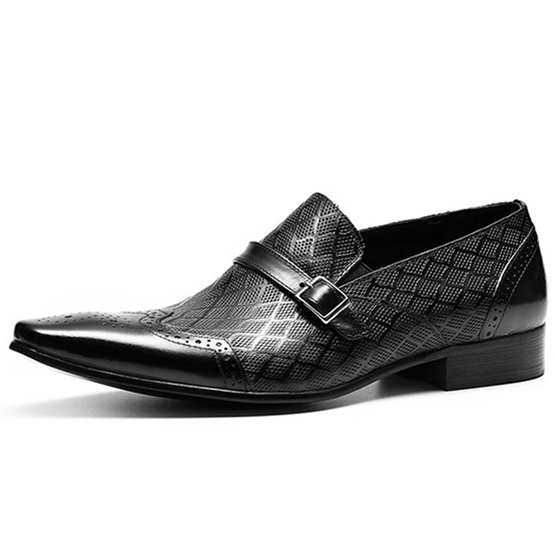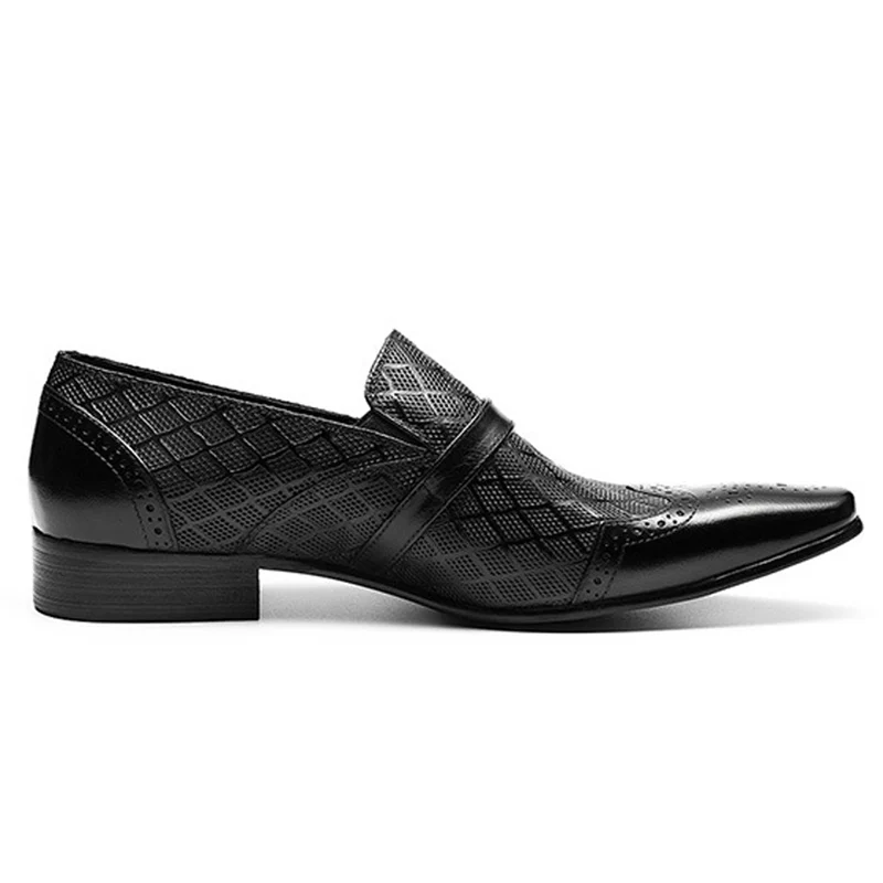 HOT SALE Italian Genuine Leather Man Formal Dress Wingtip Brogues Shoes Pointed Toe Slip on Breathable Men's